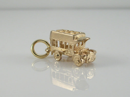 Vintage 3D 9ct gold charabanc bus charm Hollow underneath Large split ring attached Measures approximately...