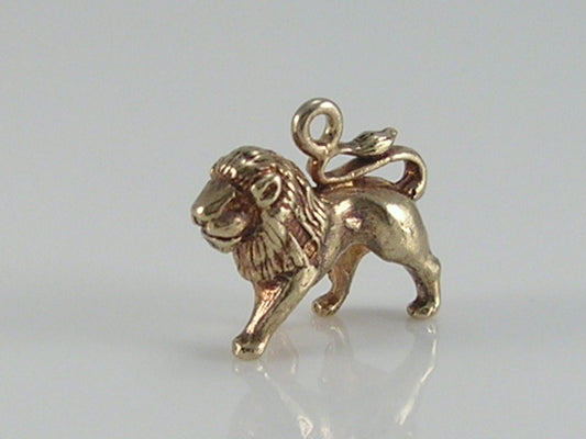 Vintage 3D 9ct gold lion/ Leo zodiac sign charm Measures approximately 12mm height excluding little...