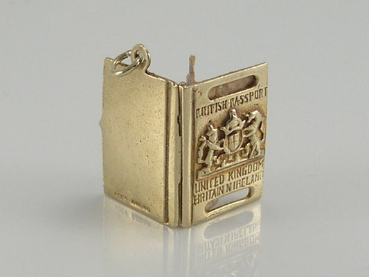Vintage 3D 9ct gold British Passport charm...opens to reveal original papers and can also personalize...