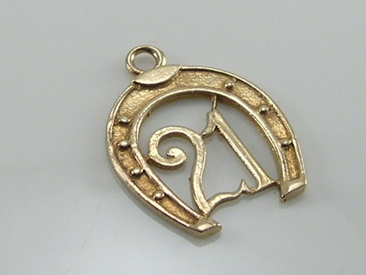 Vintage 9ct gold 21 lucky horseshoe charm pendant Measures approximately 19mm height by 16mm width...