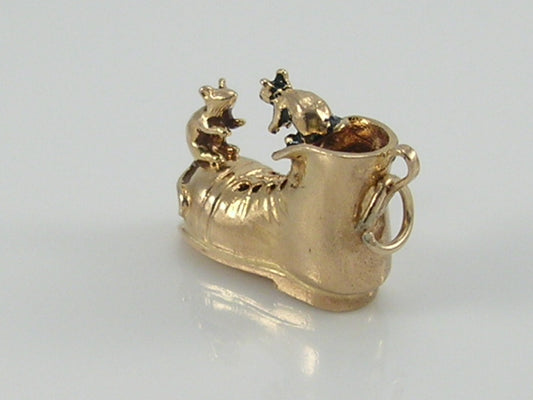 Vintage 3D 9ct gold mice in boot charm pendant#2 Measures approximately 13mm height by 19mm...