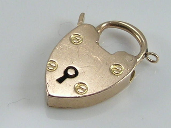 Antique vintage Edwardian 9ct rose gold heart padlock fastener Can be added to a chain...