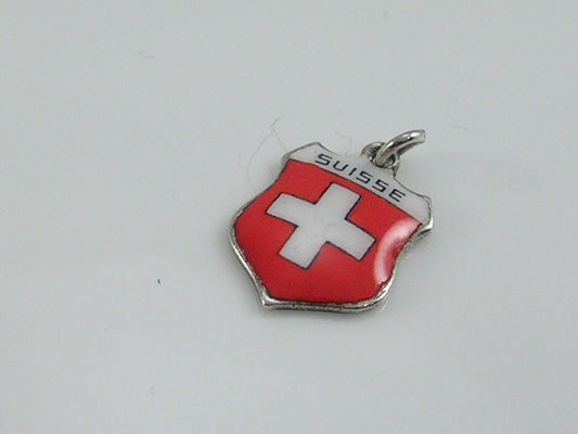 Vintage Silver Suisse Travel Shield Charm Stamped 800 (Silver Grade) Measures approximately 9/16 inch (15mm)...