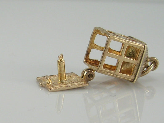 Vintage 3D 9ct gold lantern charm...lantern opens to reveal a little candle Measures approximately 13mm...