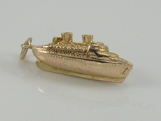 Vintage 3D 9ct gold cruise liner ship charm Measures approximately 9mm height excluding the little...