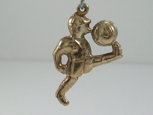 Vintage 3D 9ct gold footballer kicking football charm pendant Puffed hollow charm Measures approximately 26mm...
