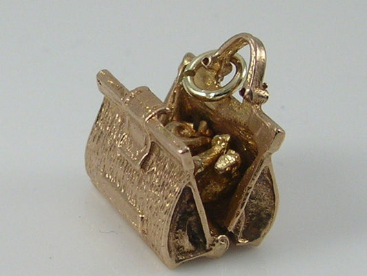 Vintage 3D 9ct gold doctors bag charm...opens to reveal movable baby...baby moves from side to...