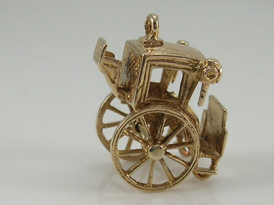 Vintage 9ct gold hansom carriage charm...movable wheels turn Measures approximately 16mm height excluding the little...