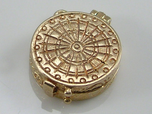 Vintage 3D 9ct gold dart board charm pendant...opens to two darts Measures approximately 15 mm...