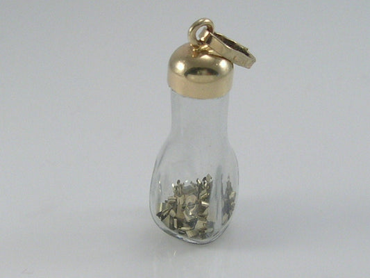 Vintage 3D 9ct gold glass bottle, inside the bottle are loose movable flakes of gold...