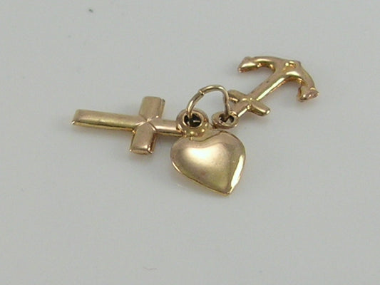 Vintage 3D 9ct gold faith, hope & charity charm pendant...each little charm dangles freely from...