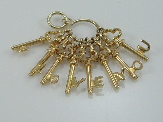 Vintage 3D 9ct gold I LOVE YOU keys charm pendant...movable, each key moves freely on...