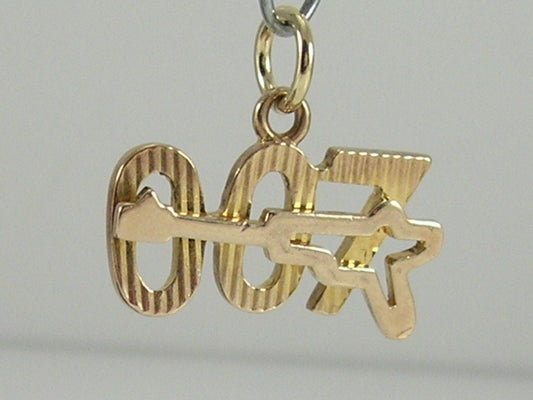 Vintage 3D 9ct gold James Bond 007 gun pistol logo charm pendant Measures approximately 12mm...