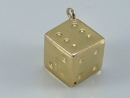 Vintage 3D 9ct gold lucky dice charm pendant Puffed hollow charm Measures approximately 9mm square...