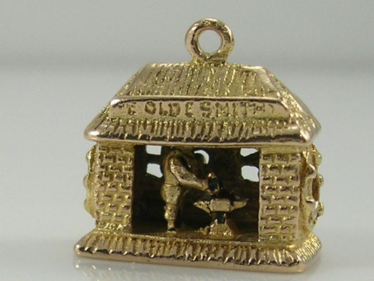 Vintage 3D 9ct gold Movable Ye Old Smithy Blacksmith charm The old smithy's arm moves...