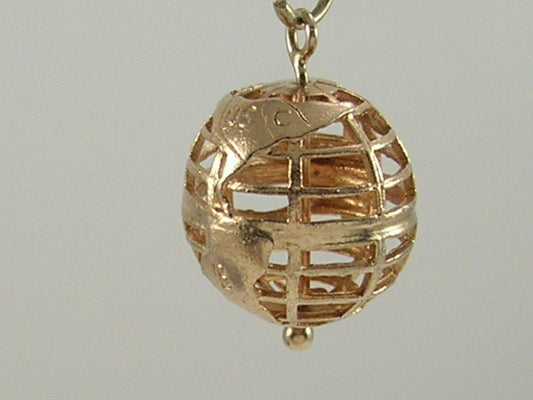 Vintage 3D 9ct gold world globe map charm pendant.. globe turns Measures approximately 26mm height...