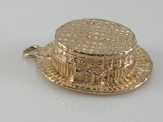 Vintage 3D 9ct gold straw boater design hat charm Measures approximately 16mm length excluding the...