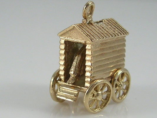 Vintage 3D 9ct gold Victorian beach hut with Wheels bathing machine charm pendant...movable legs The...