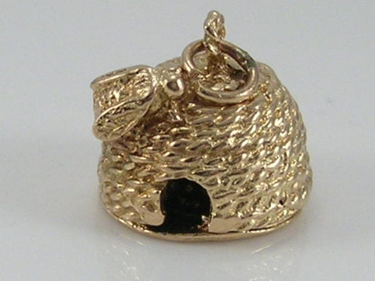 Vintage 3D 9ct gold bee hive charm...opens to honeycomb with words YOUR MY HONEY Measures...