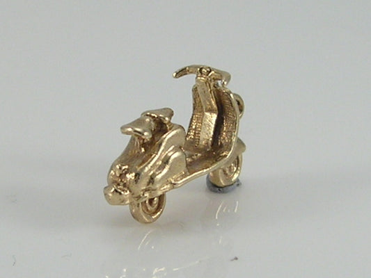 Vintage smaller size 3D 9ct gold Vespa scooter charm pendant Fixed wheels do NOT turn...