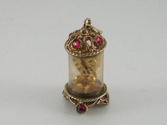 Vintage 3D 9ct gold CHIM Miners Lamp Charm...opens to reveal a canary bird MINERS LAMP...