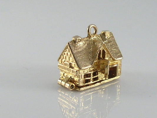 Vintage 3D 9ct gold Mechanical Nuvo Horseshoe Inn charm...opens to barman at the bar serving...
