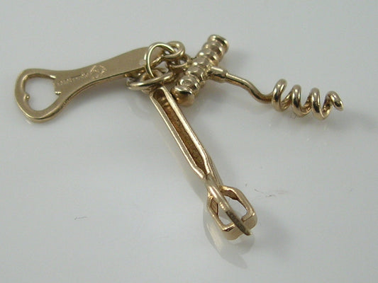 Vintage 3D 9ct gold bottle opener, corkscrew & tin opener charm...movable, each piece dangles freely...