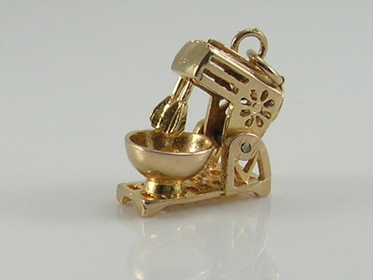 Vintage 3D 9ct gold food mixer charm pendant Movable, the whisk moves in and out...