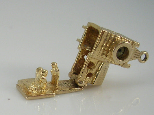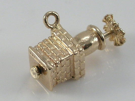 Vintage 9ct gold chimney and chimney sweep brush charm pendant...movable sweep brush moves up and...