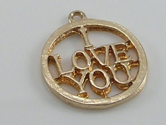 Vintage 9ct gold I LOVE YOU charm pendant Measures approximately 16mm diameter excluding the little...