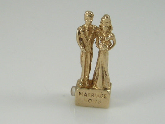 Vintage 3D 9ct gold marriage wedding vows charm...stanhope viewer is missing no text Measures approximately...