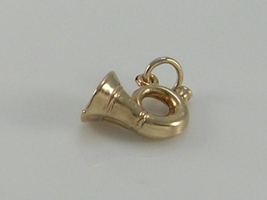 Vintage 3D 9ct gold smaller size French horn charm pendant Puffed hollow charm pendant Measures...