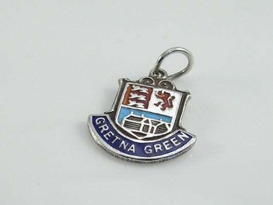 Vintage Silver Gretna Green Travel Shield Charm  Stamped Sterling Silver Measures approximately  9/16 inch (15mm)...