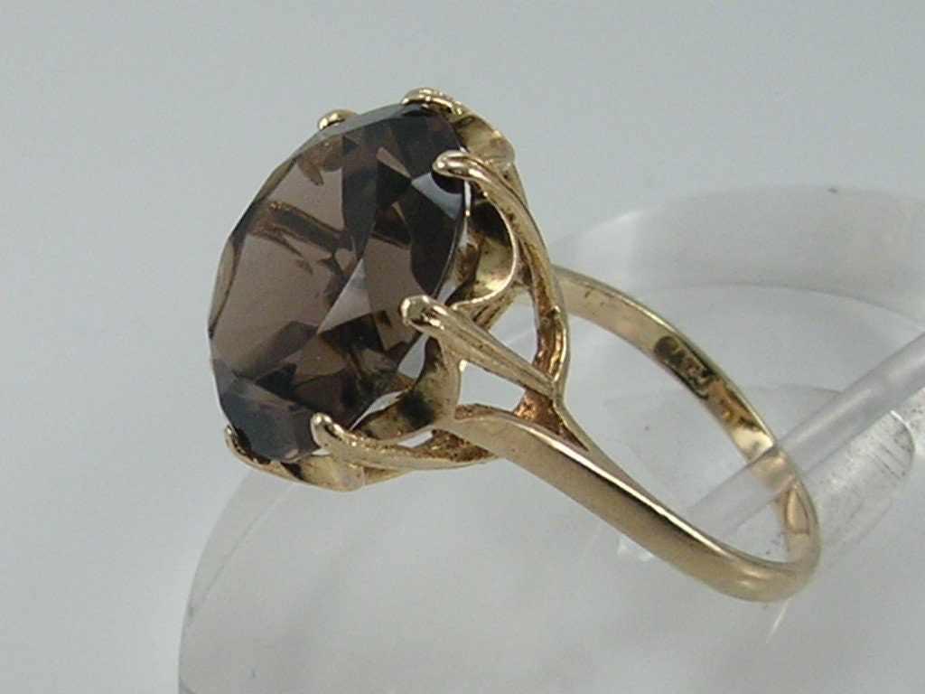 Gorgeous vintage 9ct gold smoky quartz statement ring