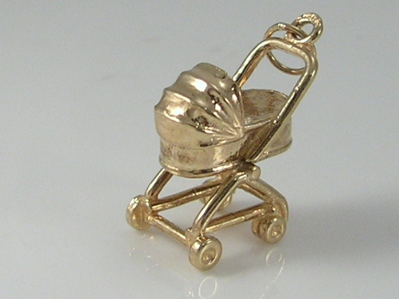 Vintage 9ct Baby In Buggy/Pushchair/Pram Charm Pendant