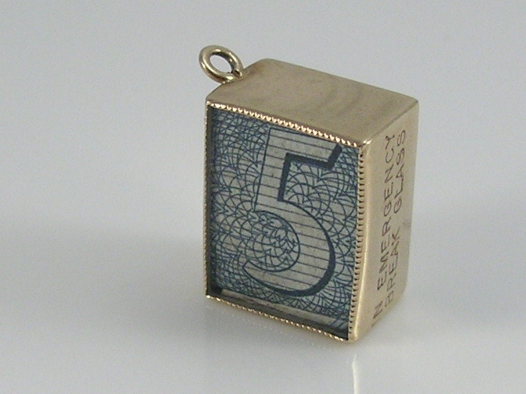 Vintage 3D 9ct gold £5 five pound note charm