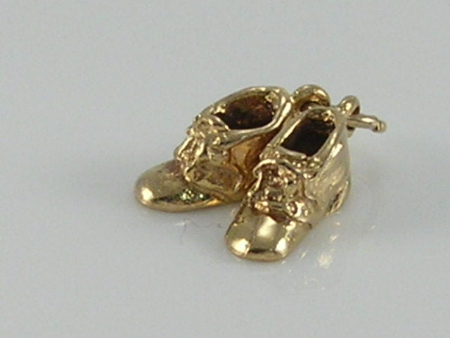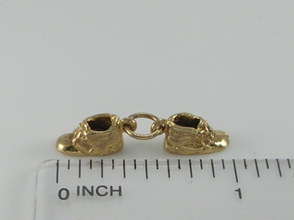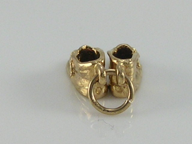 Vintage 3D smaller size 9ct gold baby bootees shoes charm...each little bootee dangles freely from the central open jump ring fixed charm