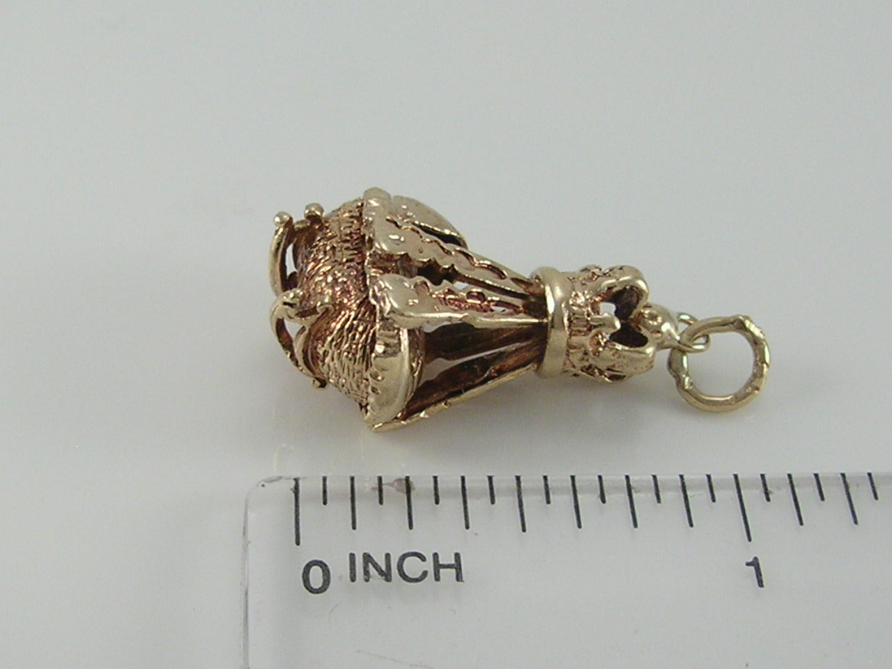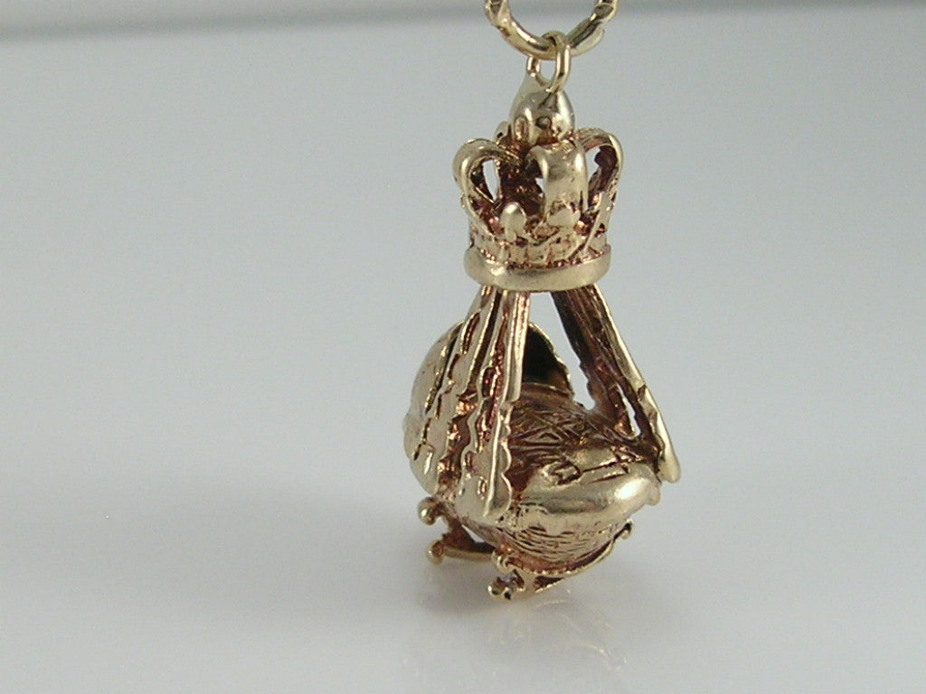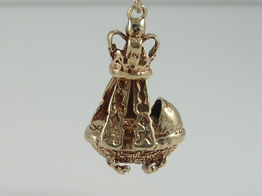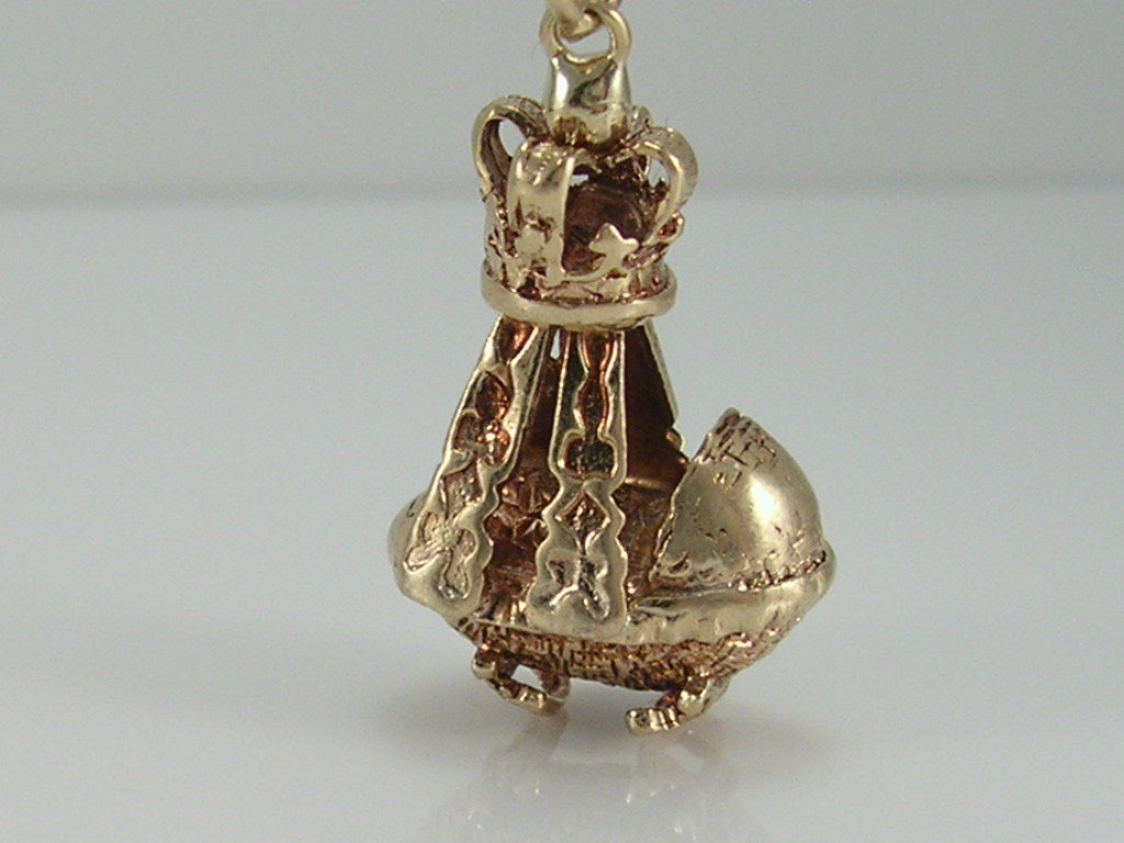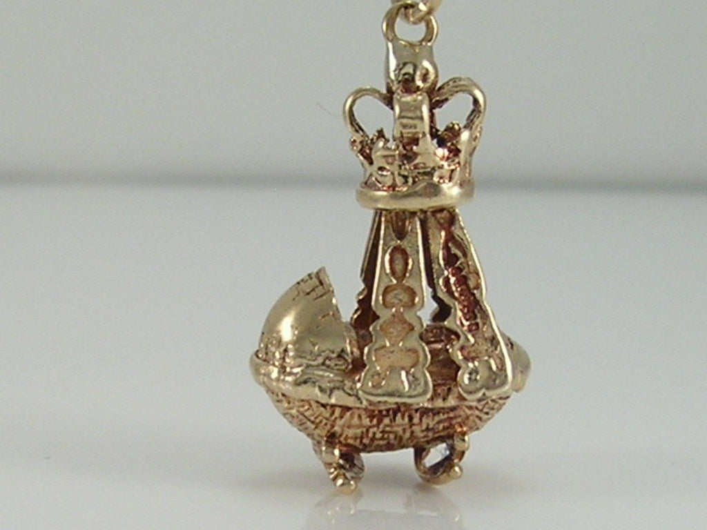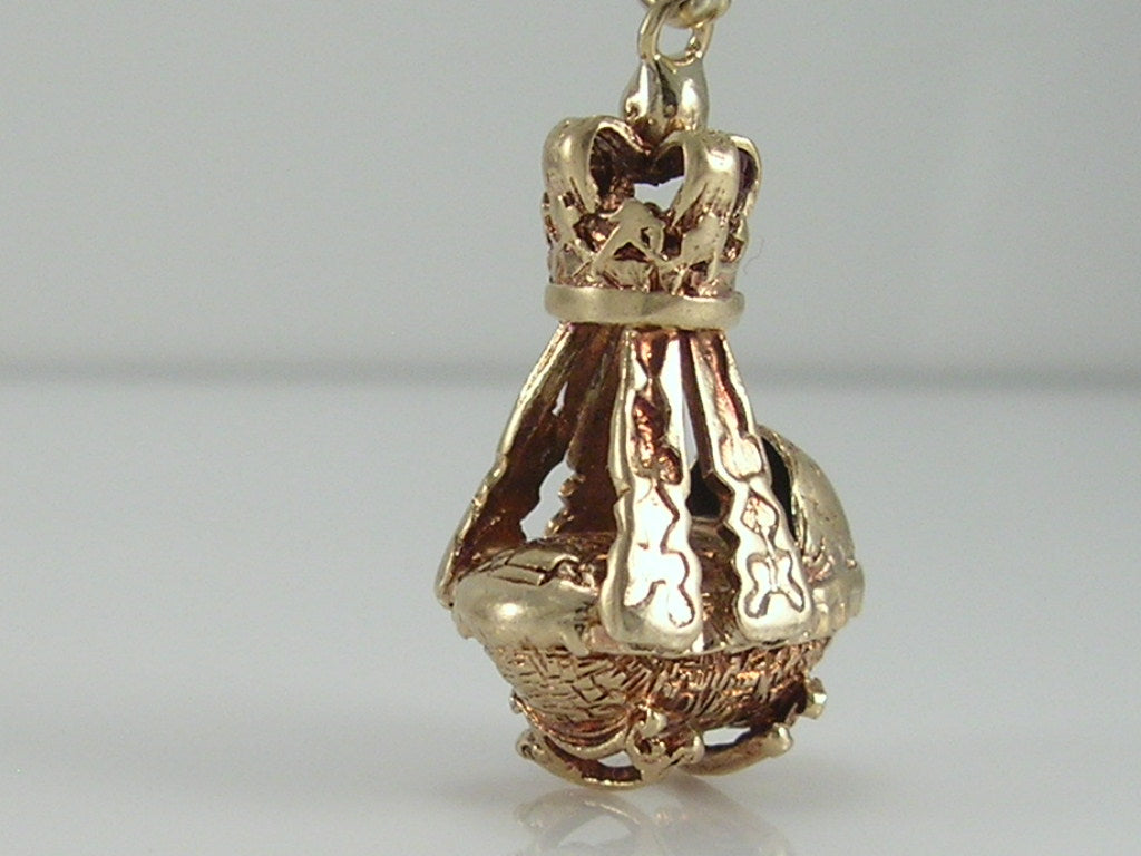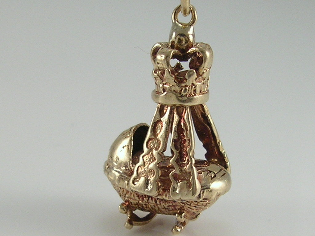Vintage 3D 9ct gold baby in Royal crown top basket crib charm