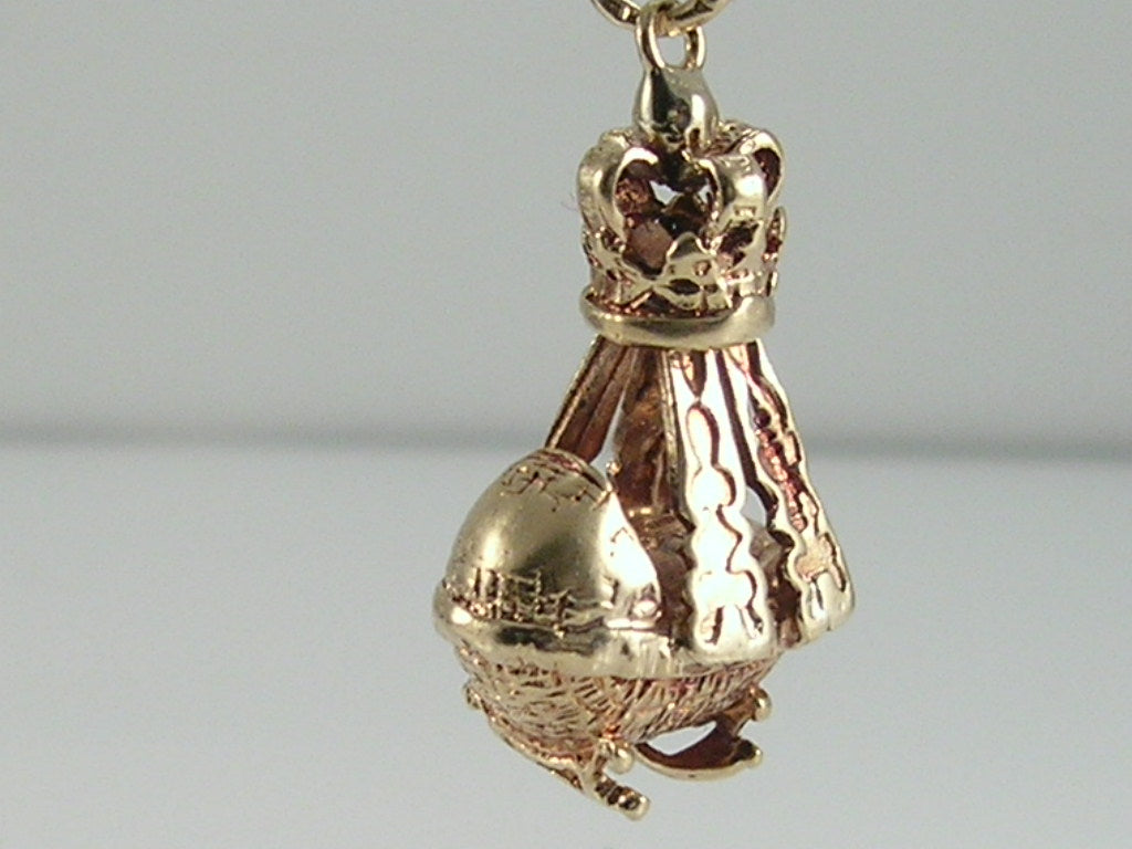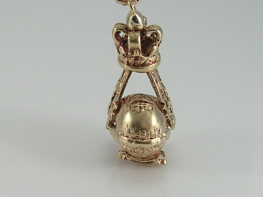 Vintage 3D 9ct Gold Baby In Royal Crown Basket Crib Charm H/MK 1973