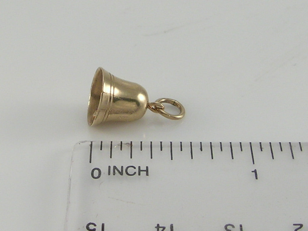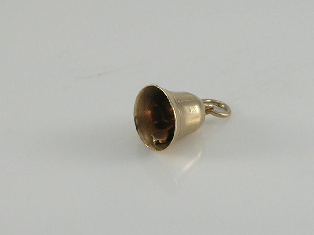 Vintage 3D 9ct gold small size bell charm pendant...movable clapper inside the bell