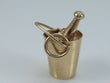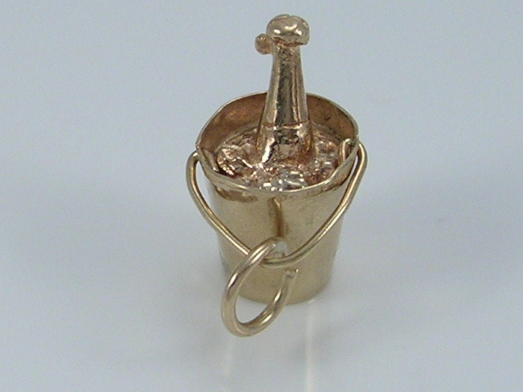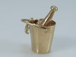 Vintage 3D 9ct gold champagne bottle in ice bucket charm pendant...movable handle lifts up and down