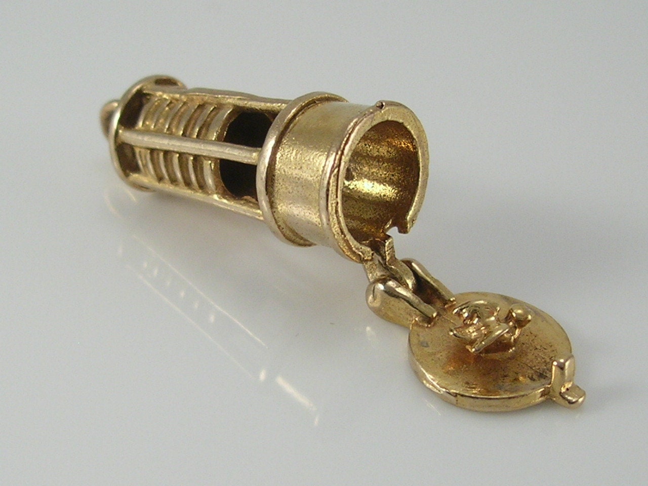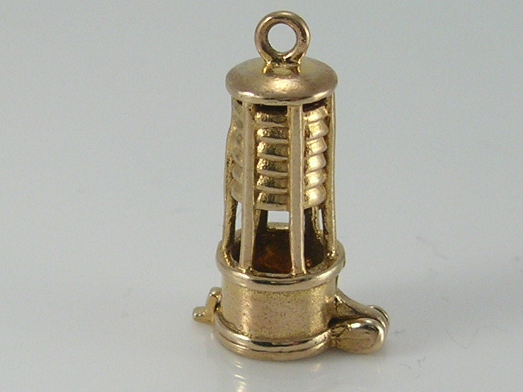 Vintage 3D 9ct gold CHIM Miners Lamp Charm...opens to reveal a canary bird