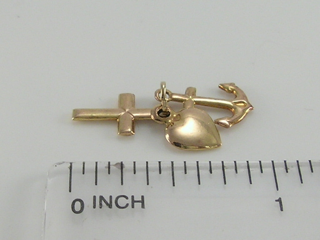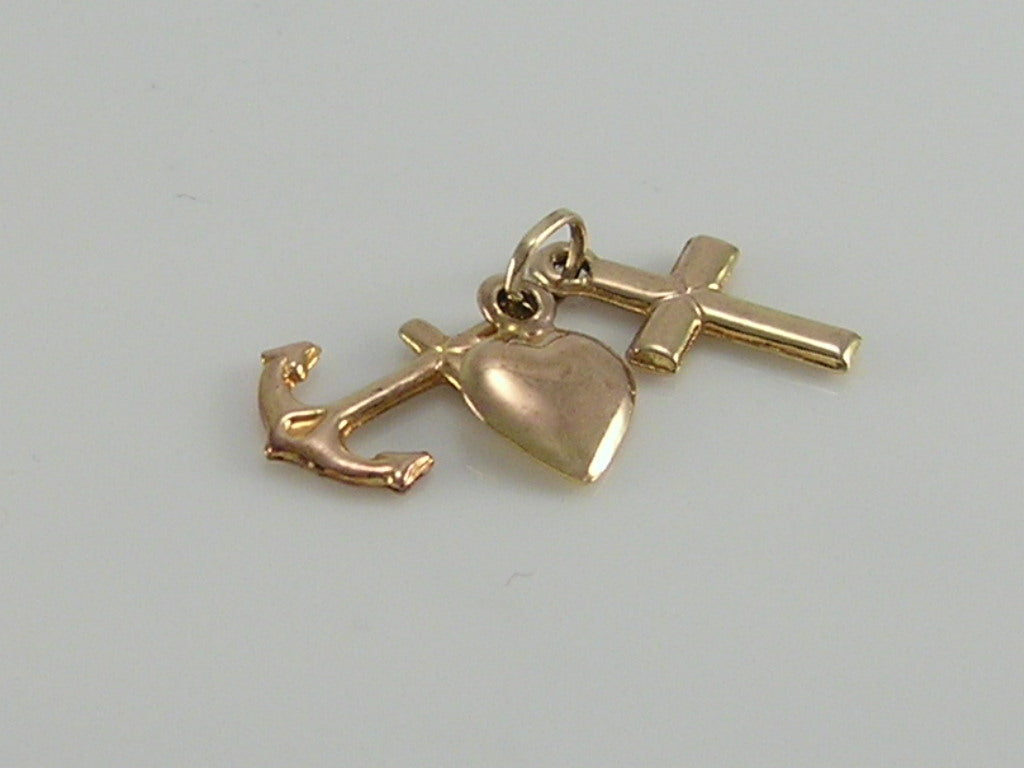Vintage 3D 9ct gold faith, hope & charity charm pendant...each little charm dangles freely from bail ring