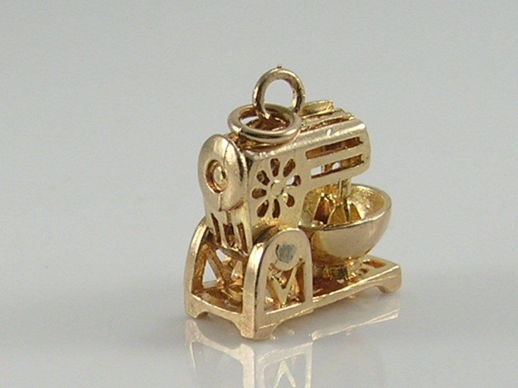 Vintage 3D 9ct gold food mixer charm pendant