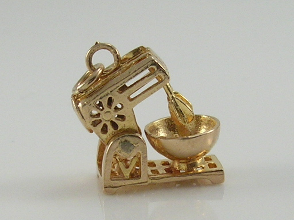 Vintage 3D 9ct Gold Food Mixer Charm Pendant Movable H/MK 1978