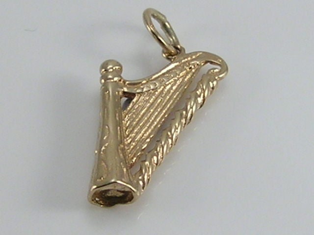 Vintage 3D 9ct gold Harp charm pendant