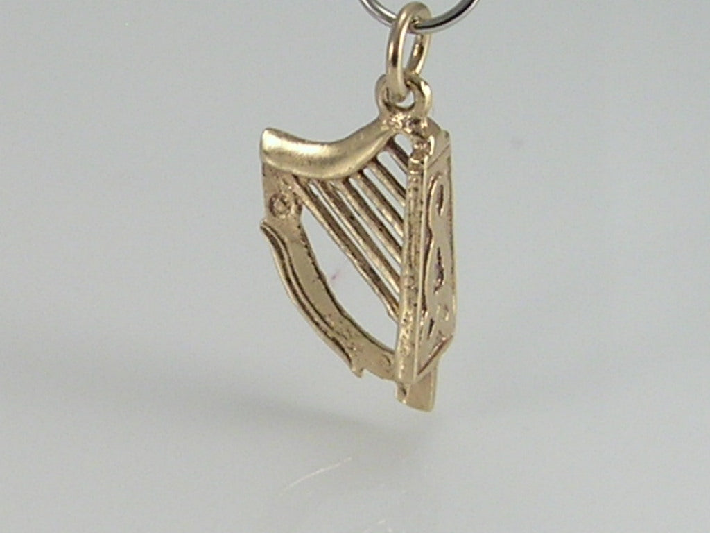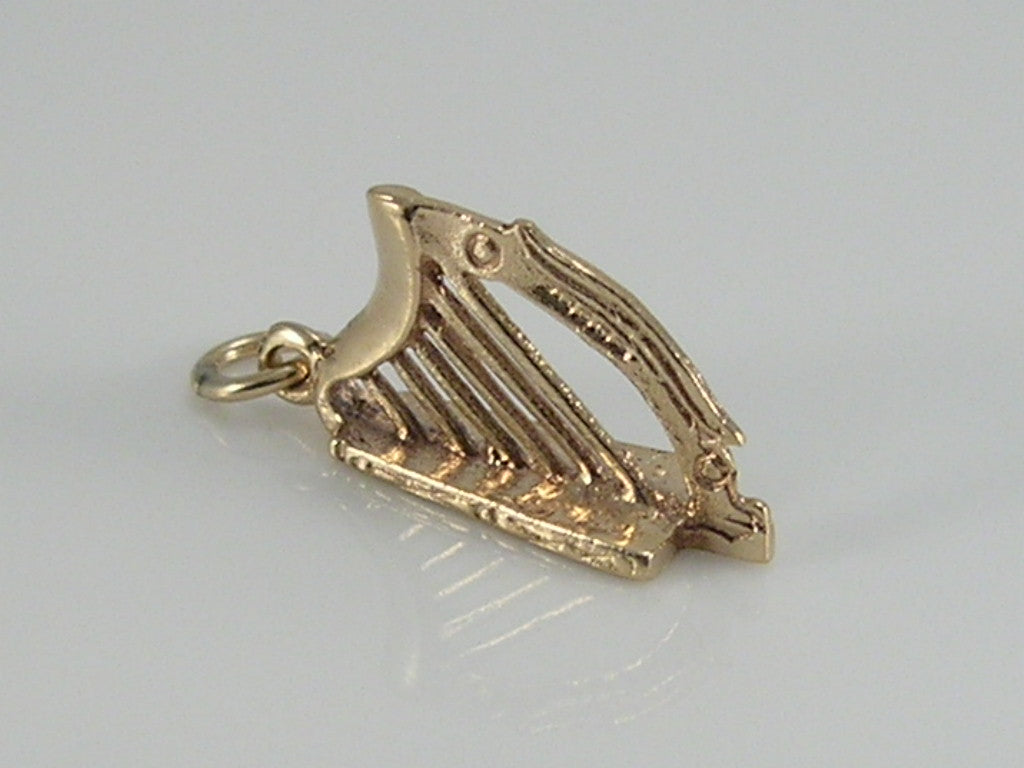 Vintage 3D 9ct gold Irish Celtic Harp charm pendant