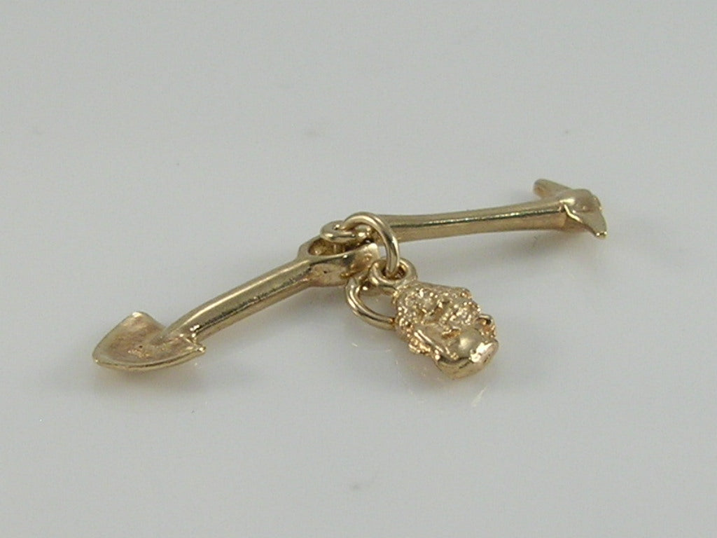 Vintage 3D 9ct Gold Mining Pick, Shovel & Nugget Charm Pendant H/MK 1979