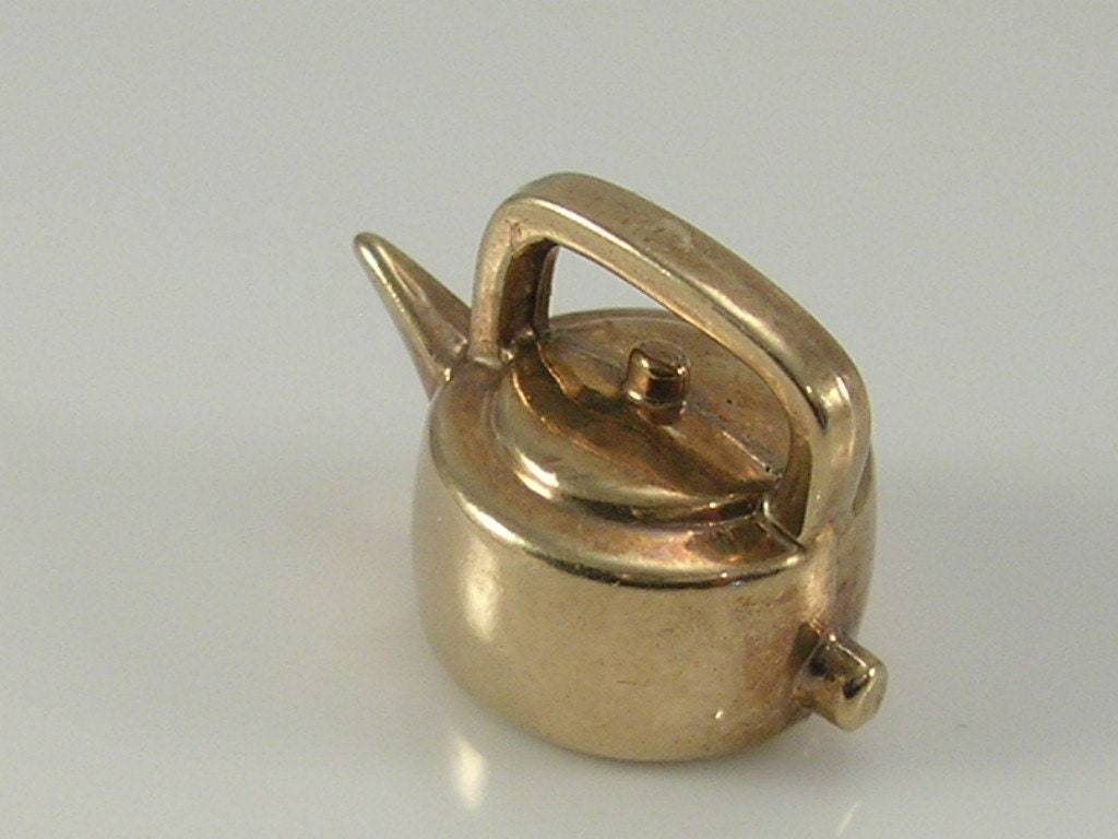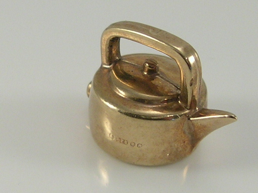 Vintage 3D 9ct Gold Kettle Charm. H/MK 1970