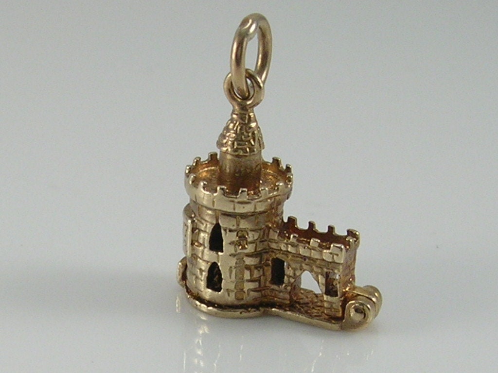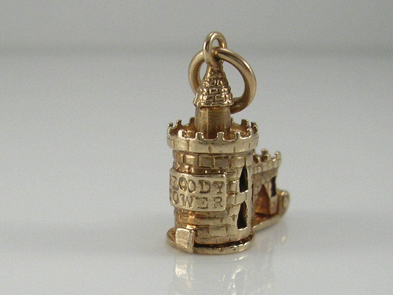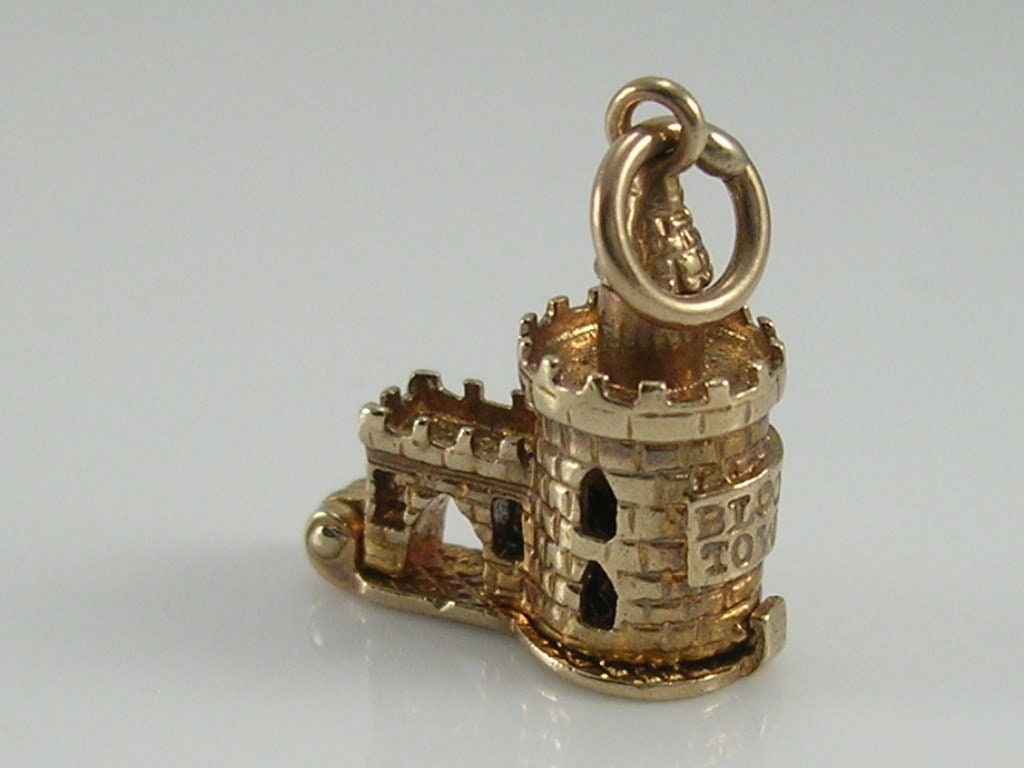 Vintage 3D 9ct Gold London Bloody Tower Charm Pendant H/MK 1966